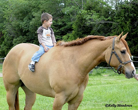 | Connor & Angelsfinalcreation "Belle" - May 2010 Connor and Belle were born the same exact day, and almost the same exact time. Since then, the two have been connected to each other. Belle runs up to Connor in the pasture, and let Connor start riding her bareback last year, as a 2-year old! She might be a "crazy halter horse", but she's crazy about Connor! |