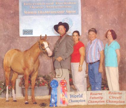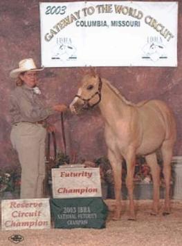 | A Creation In Pink ~ More Info 2003 Red Dun Filly 2003 Gateway To The World Futurity Champion and Res. Circuit Champion |