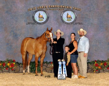 | An Awesome Creation - 2004 Red Dun Gelding 2013 IBHA World Champion Youth 3 and Over Gelding 2011 IBHA World Champion Youth Amateur Western Showmanship 14-18 2011 IBHA Reserve World Champion Youth 3 and Over Gelding 2004 IBH Congress Futurity Champion IBHA Superior Halter |