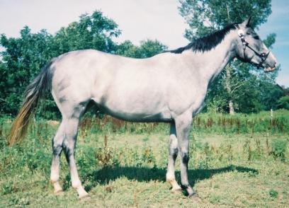 | Blizzard 2002 Gray Jockey Club-registered filly By Charging Through out of Asuglow Ready to start your way! Never on the track - she wasn't broke when we purchased her. She ground-drives and has been trail ridden by highways, through corn fields, over logs, through water. Should mature to 16H - currently stands 15.2H. Originally bought as a H/J prospect, but would also make a nice dressage mount. Siblings have excelled in the Jumping and Eventing arenas. Would also make a nice mare for WB crosses with her substantial bone. |