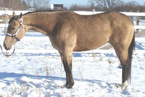 | One Overdun Cookie "Cookie" 2002 AQHA/IBHA/ABRA Buckskin Mare |