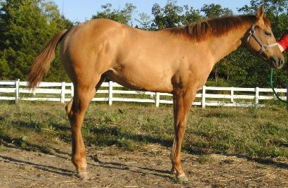 | Completely Smokin "Miss" 2000 AQHA Sorrel Mare By Hes Complete, out of Miss No Smoke |