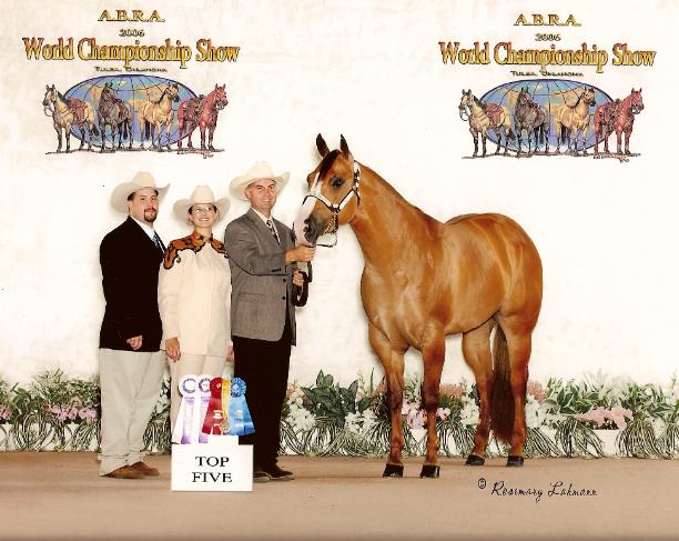 | Accomplishments * 2010 IBHA & ABRA World Champion * 2004 & 2005 ABRA Reserve World Champion * 2006 ABRA Congress Champion 3 Year Old Mare * 2006 ABRA Congress Res. Champion Amateur Mare * 2006 Top 3 ABRA World Show 3-Year Old Mare * IBHA Superiors in Open and Amateur Halter * 2005 IBHA Reserve Honor Roll Open Halter Mares * 2005 IBHA Champion Honor Roll Amateur Mares * 2006 ABRA Honor Roll Amateur Mares * ABRA ROMs Open & Amateur Halter Mare |